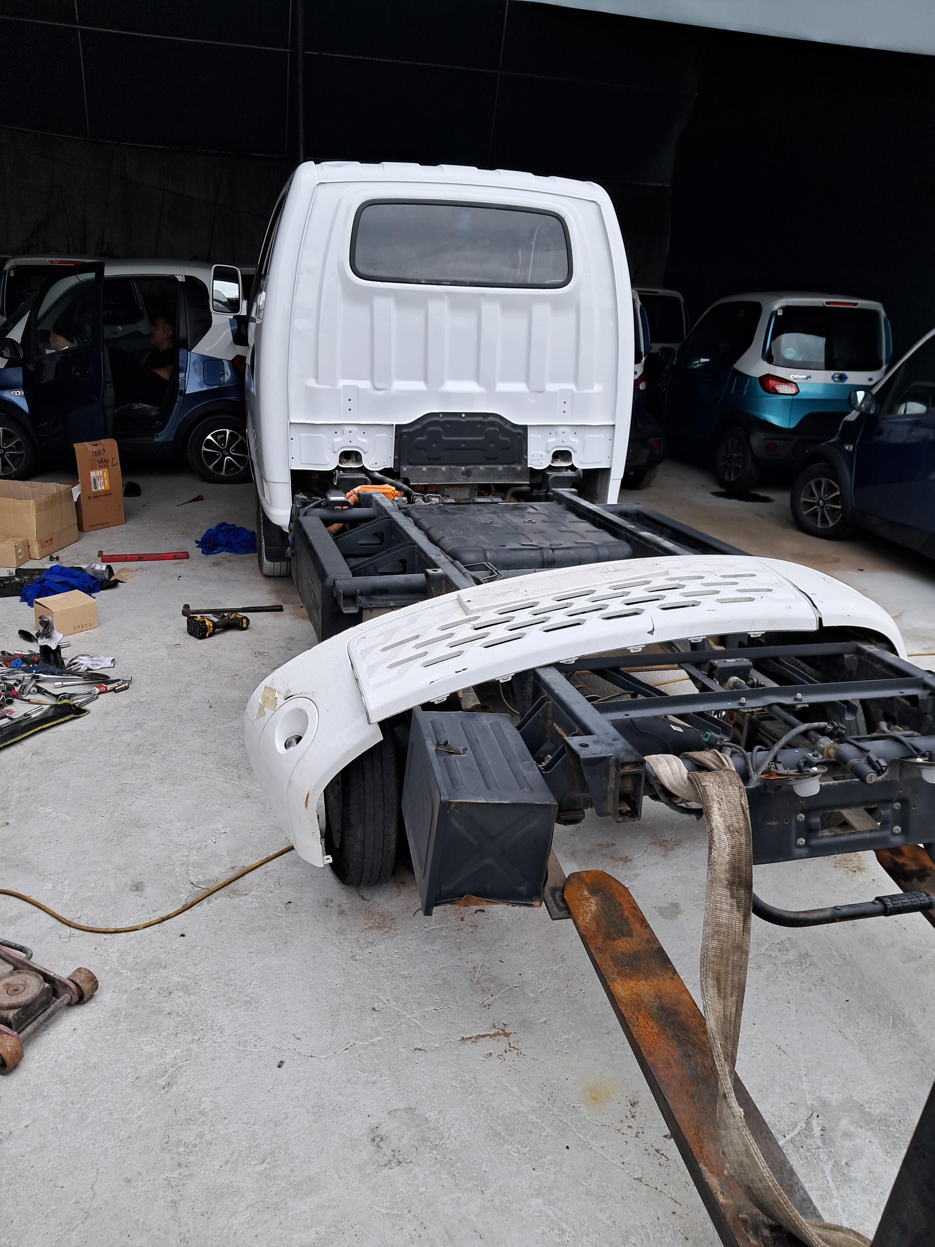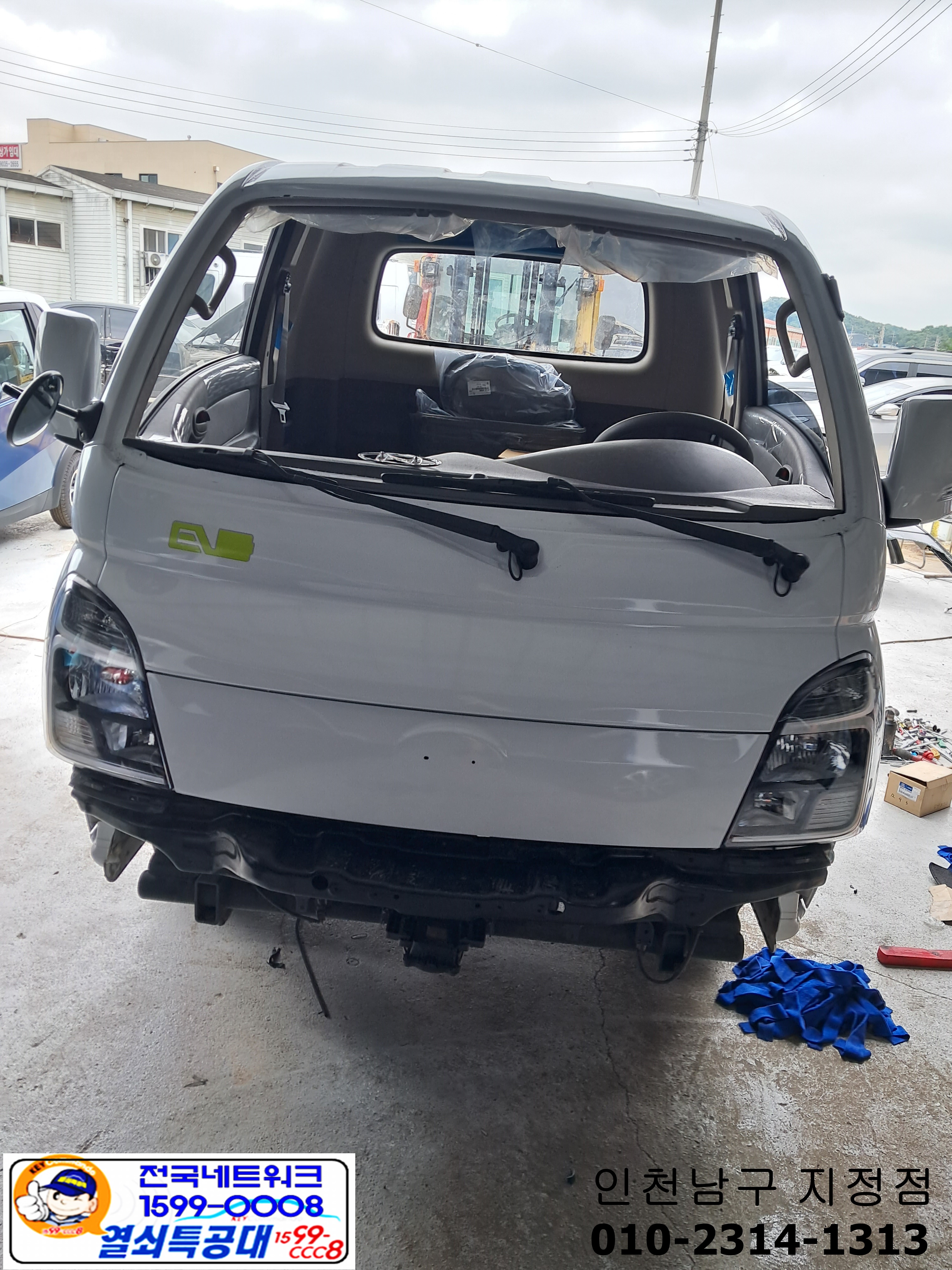 공업사에서 수리하고잇는 전기차 포터