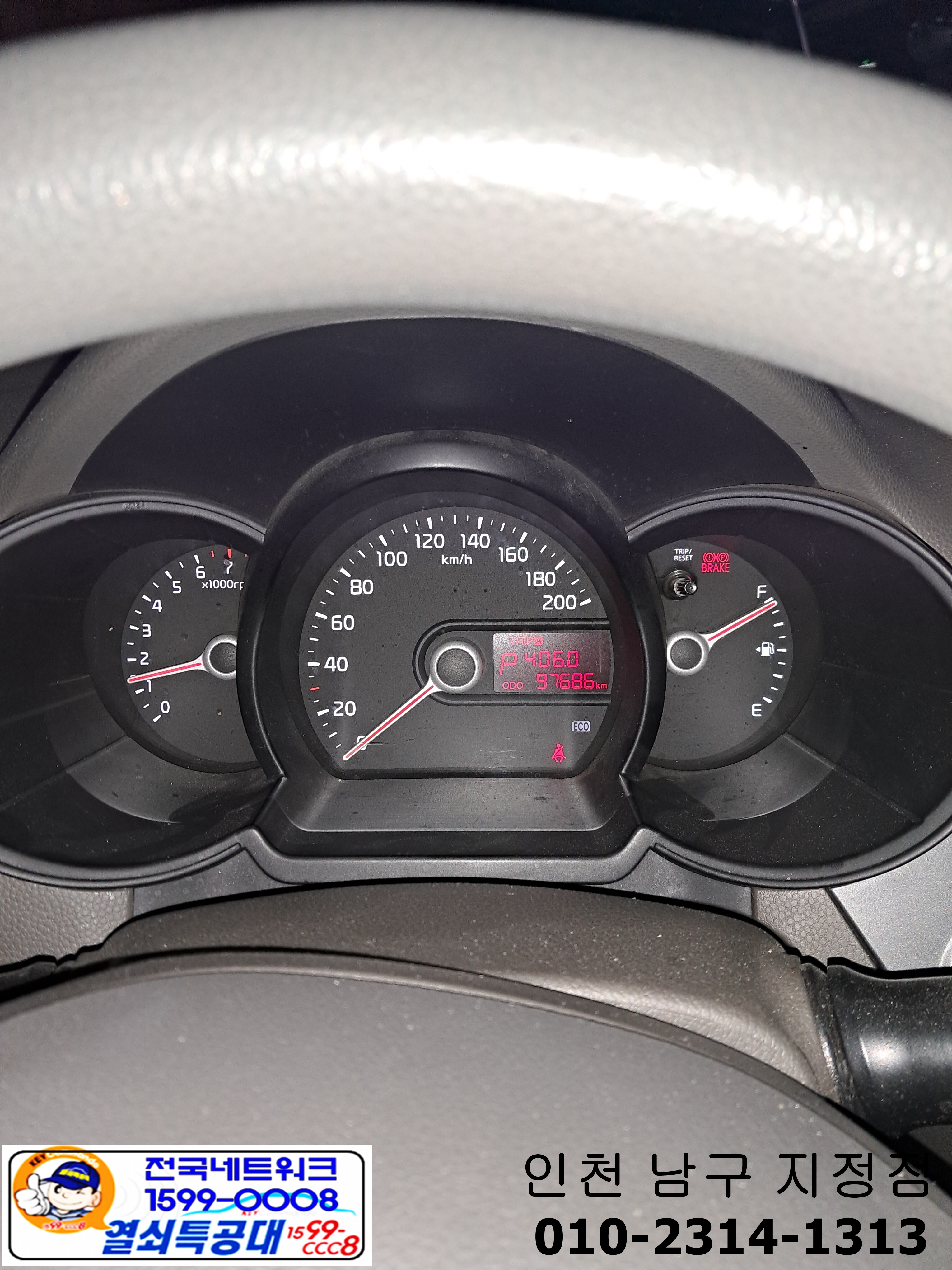 시동이켜진 올뉴모닝의 계기판입니다