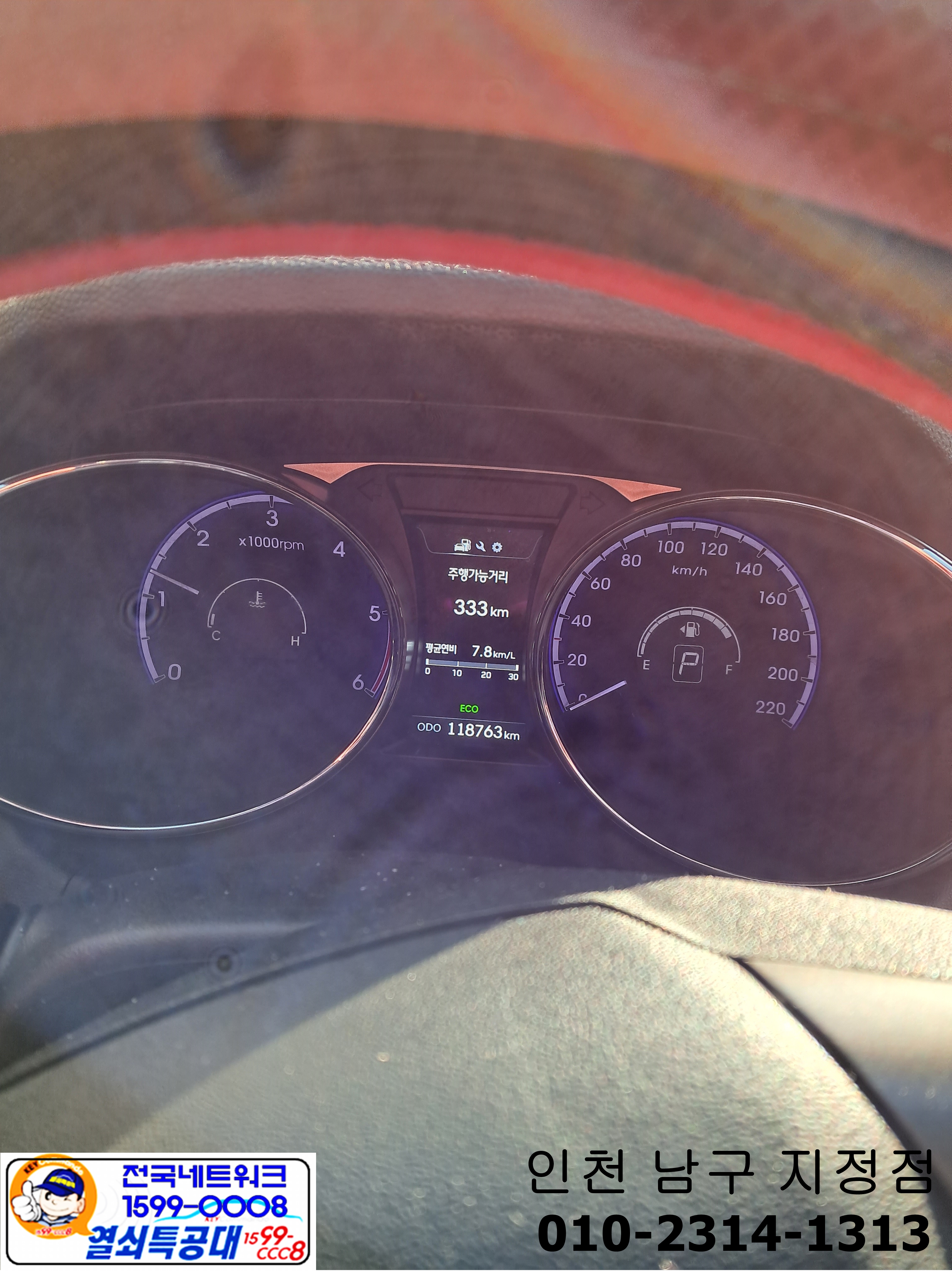 인천 중구 중앙동에서 투싼 자동차키분실 스마트키제작