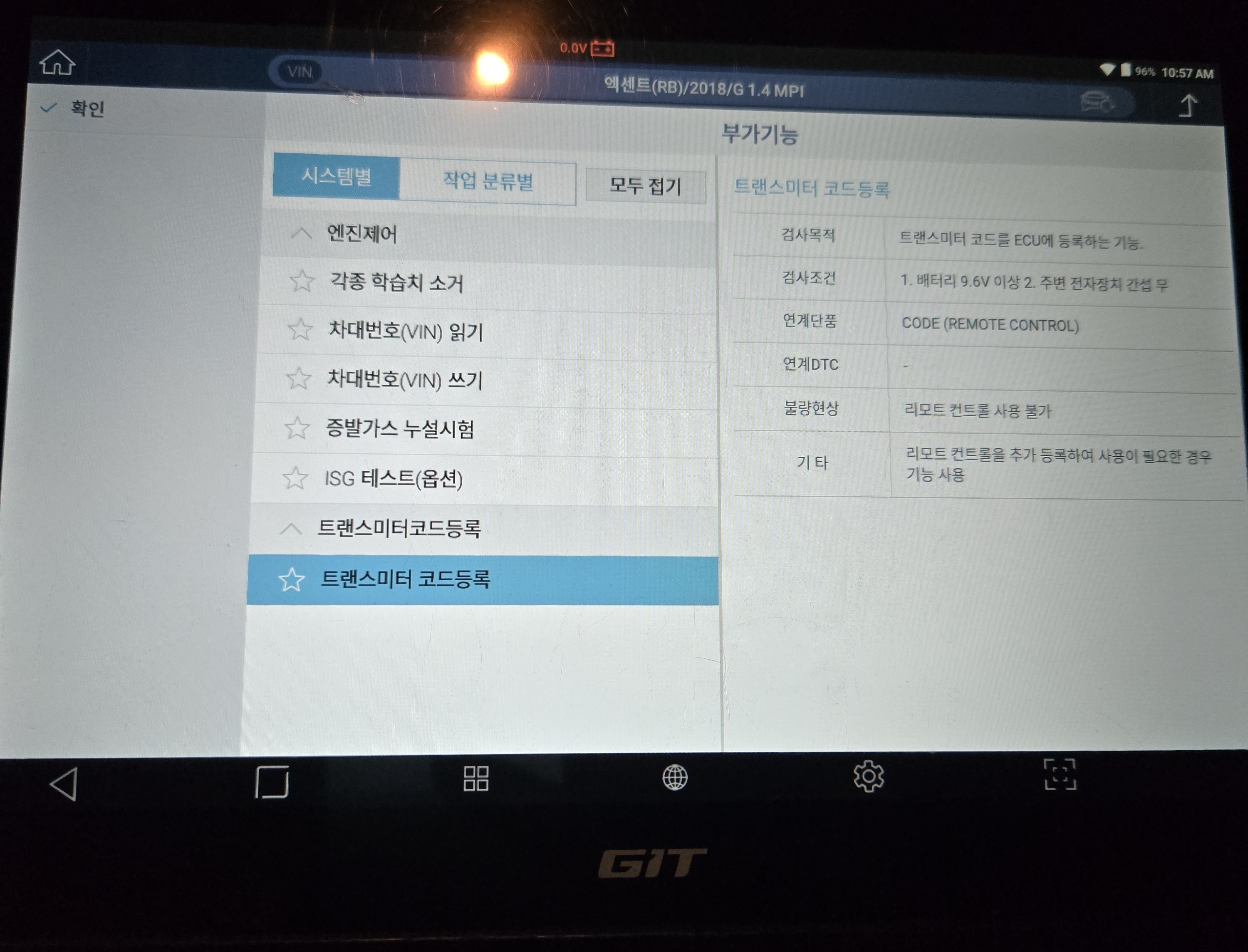 진단기를 사용하여 리모컨을 차량에 등록해줍니다