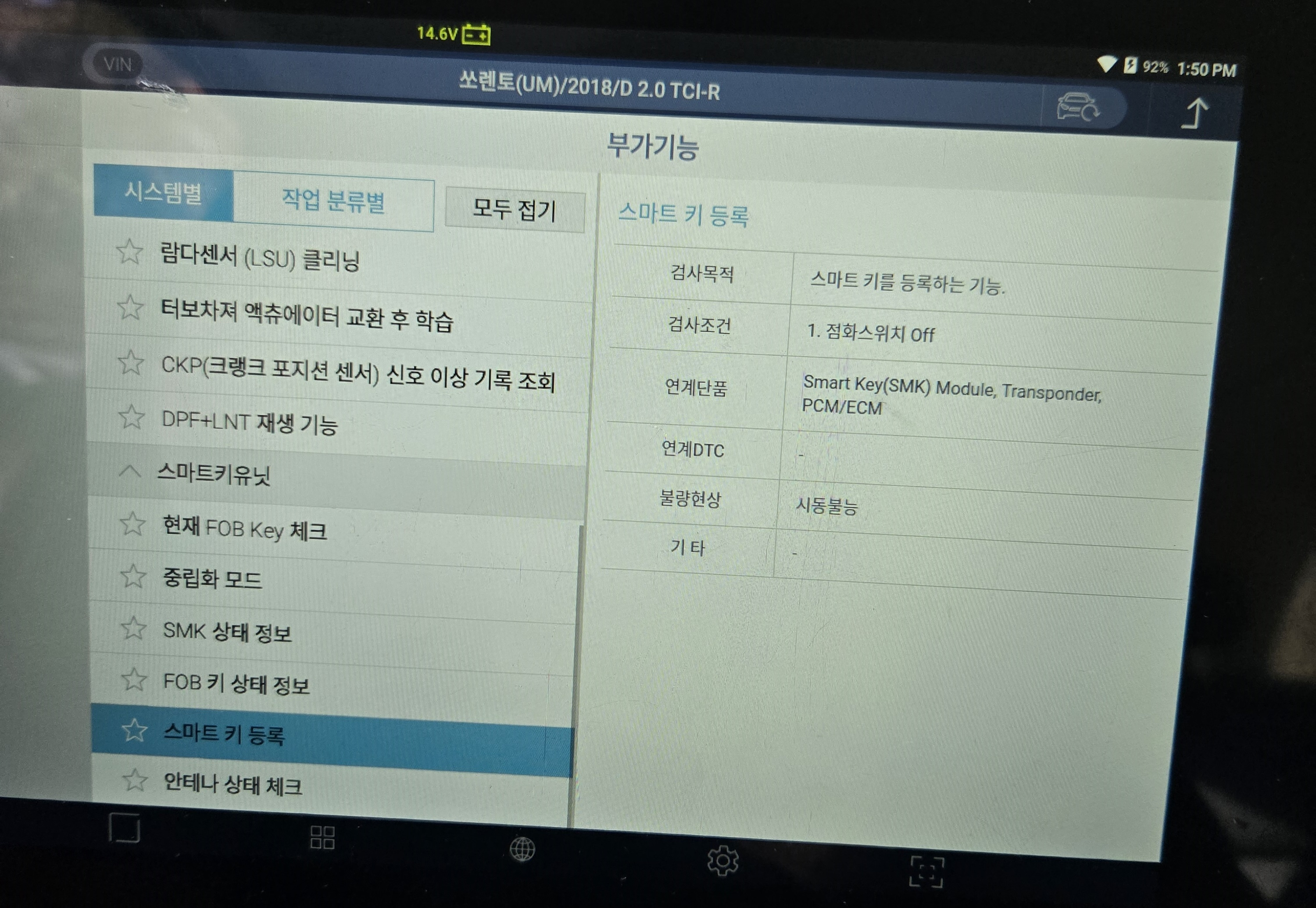 진단기를 사용하여 스마트키를 차량에 등록해야