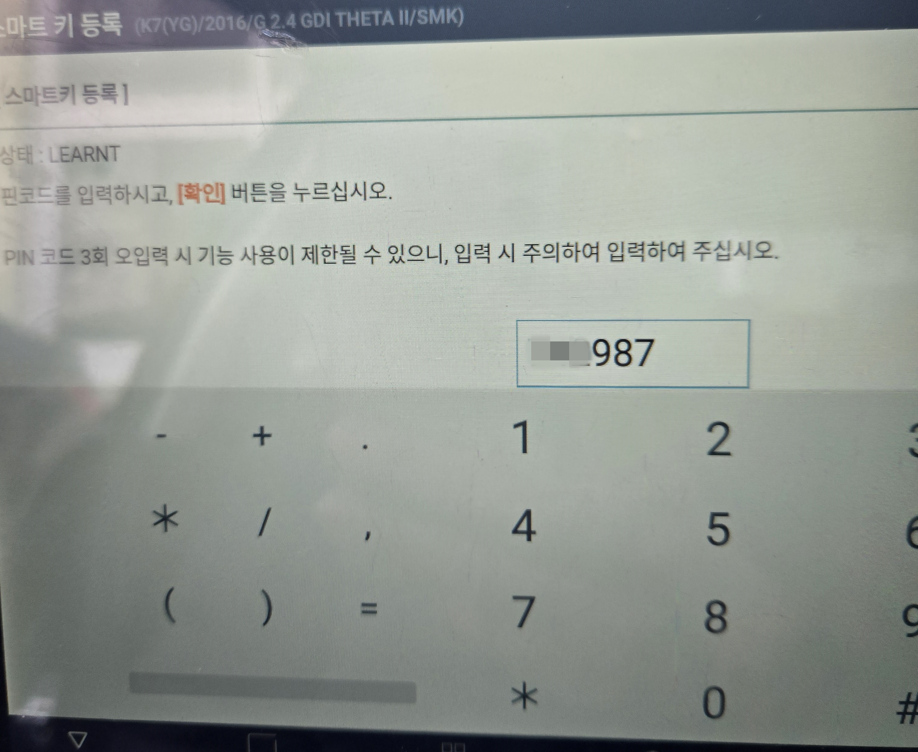 차량의 비밀번호를 입력하고 스마트키를 등록합니다