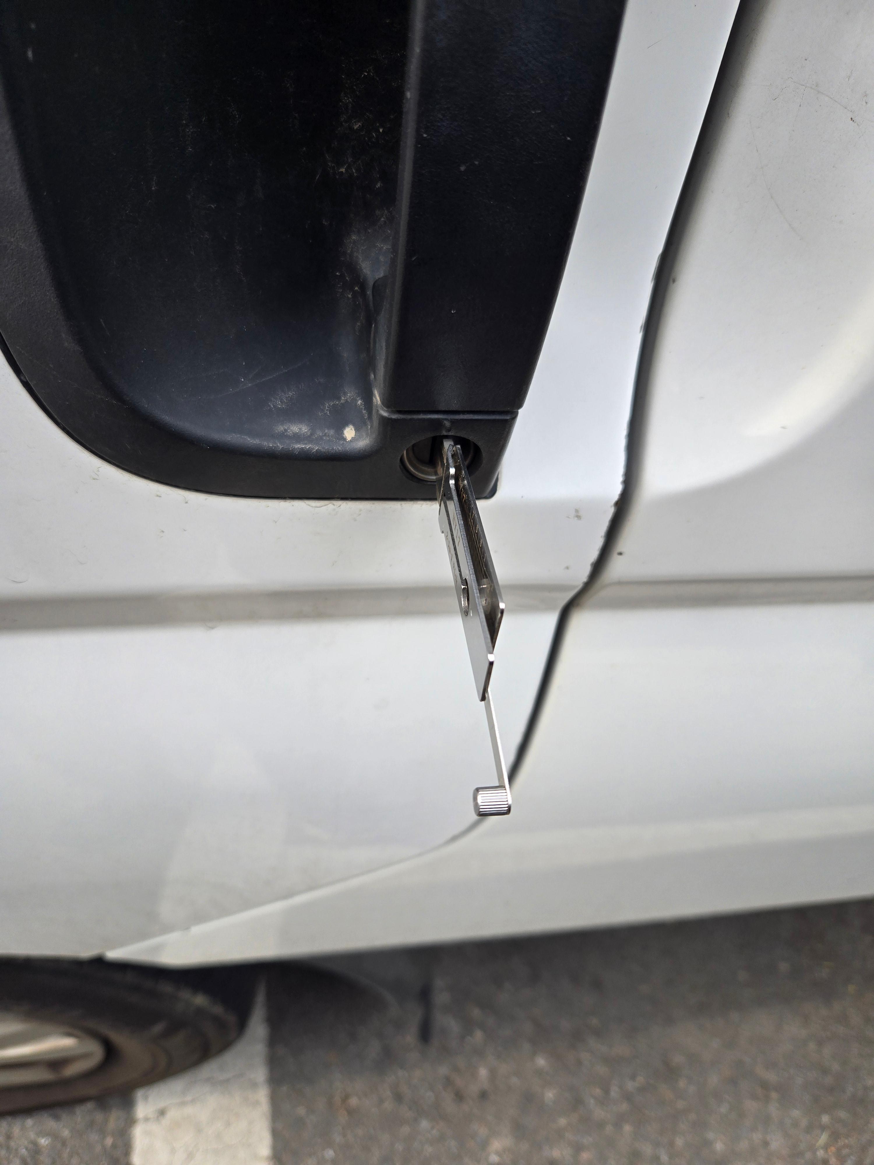 가공되어진키를 도어의 키홀에넣고 돌려보니