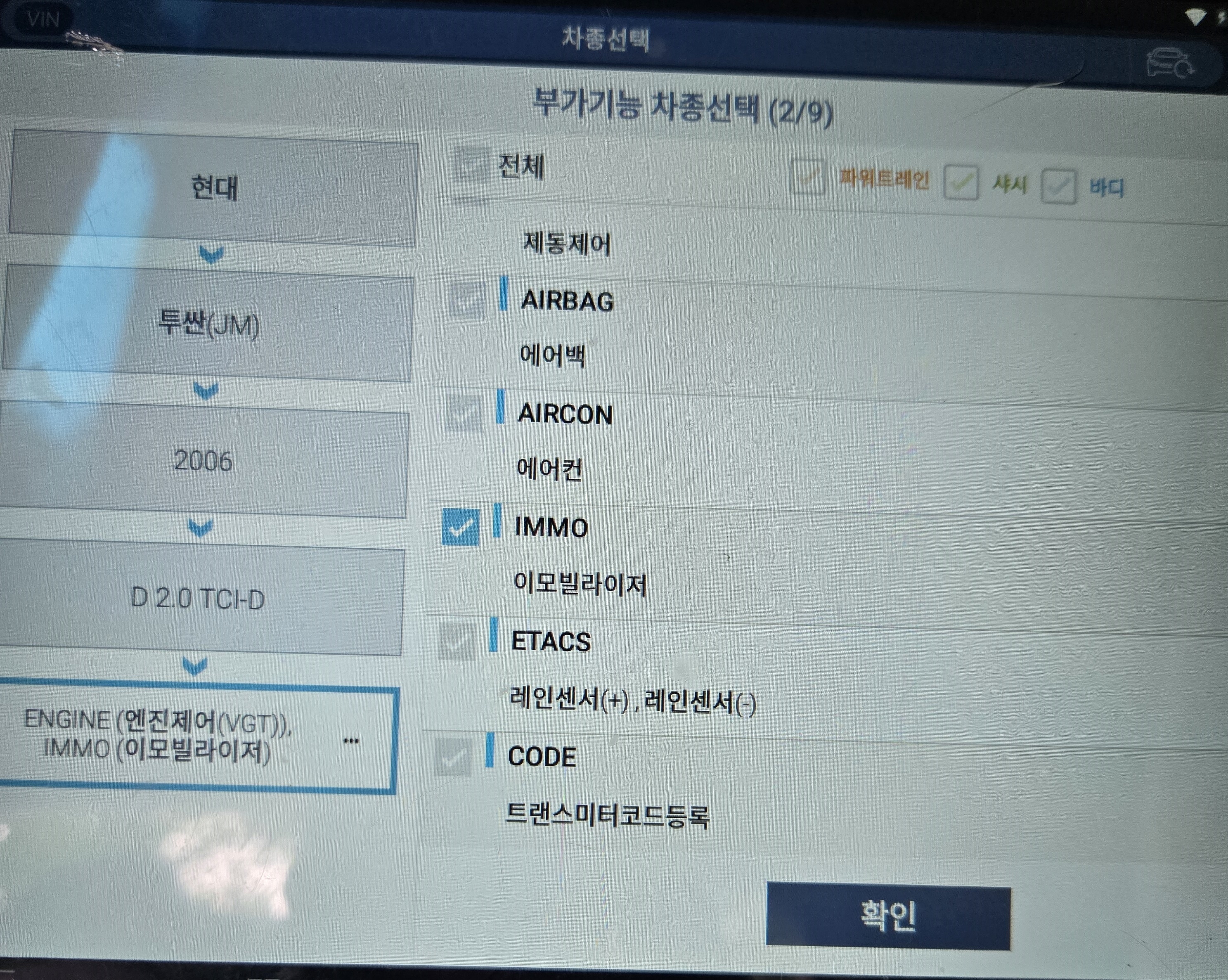 이번작업은 고객님께서 2006년식 투싼차량인데