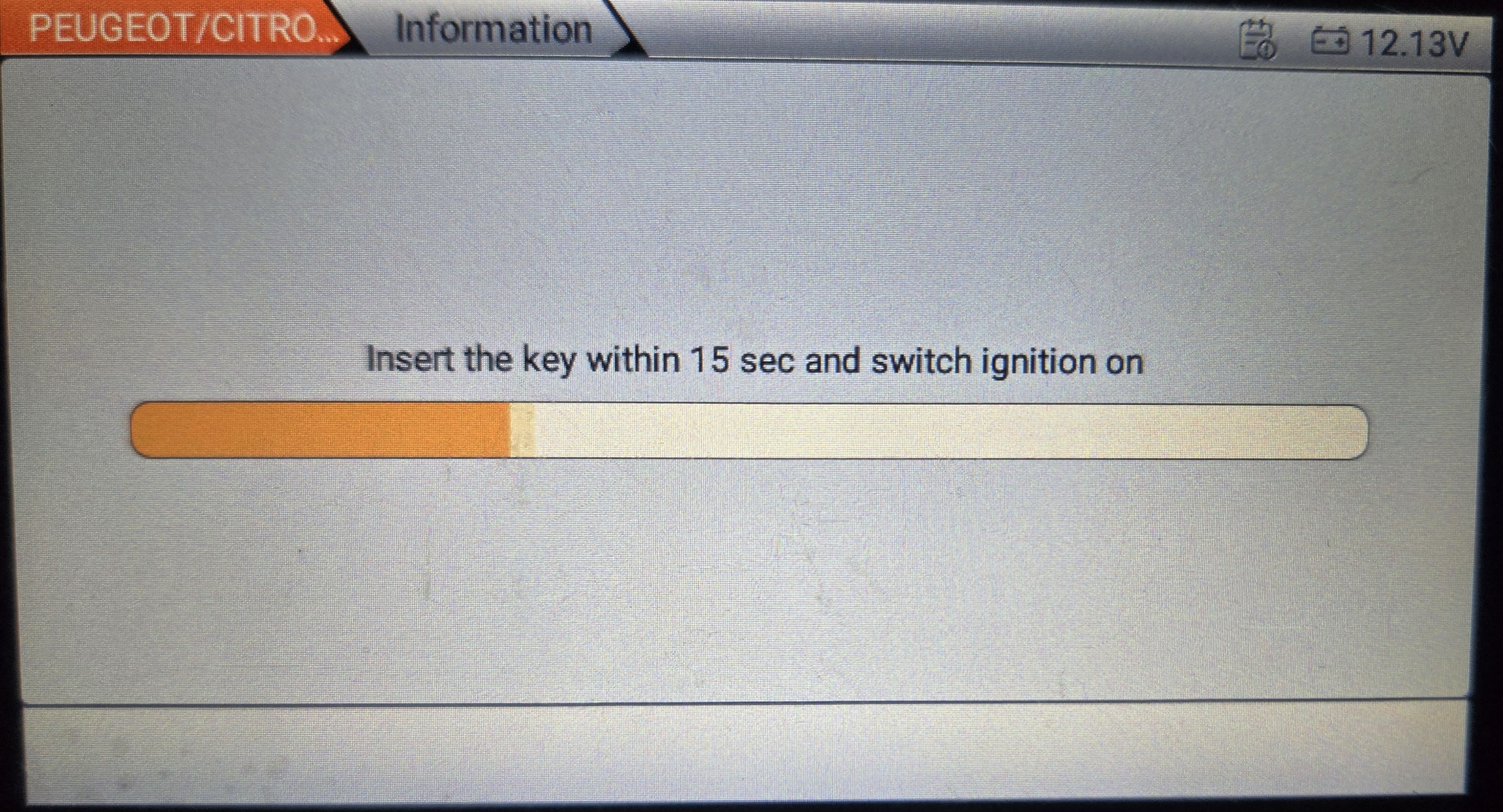 시동키박스에 키를 삽입하고 진단기로 입력을 시작합니다