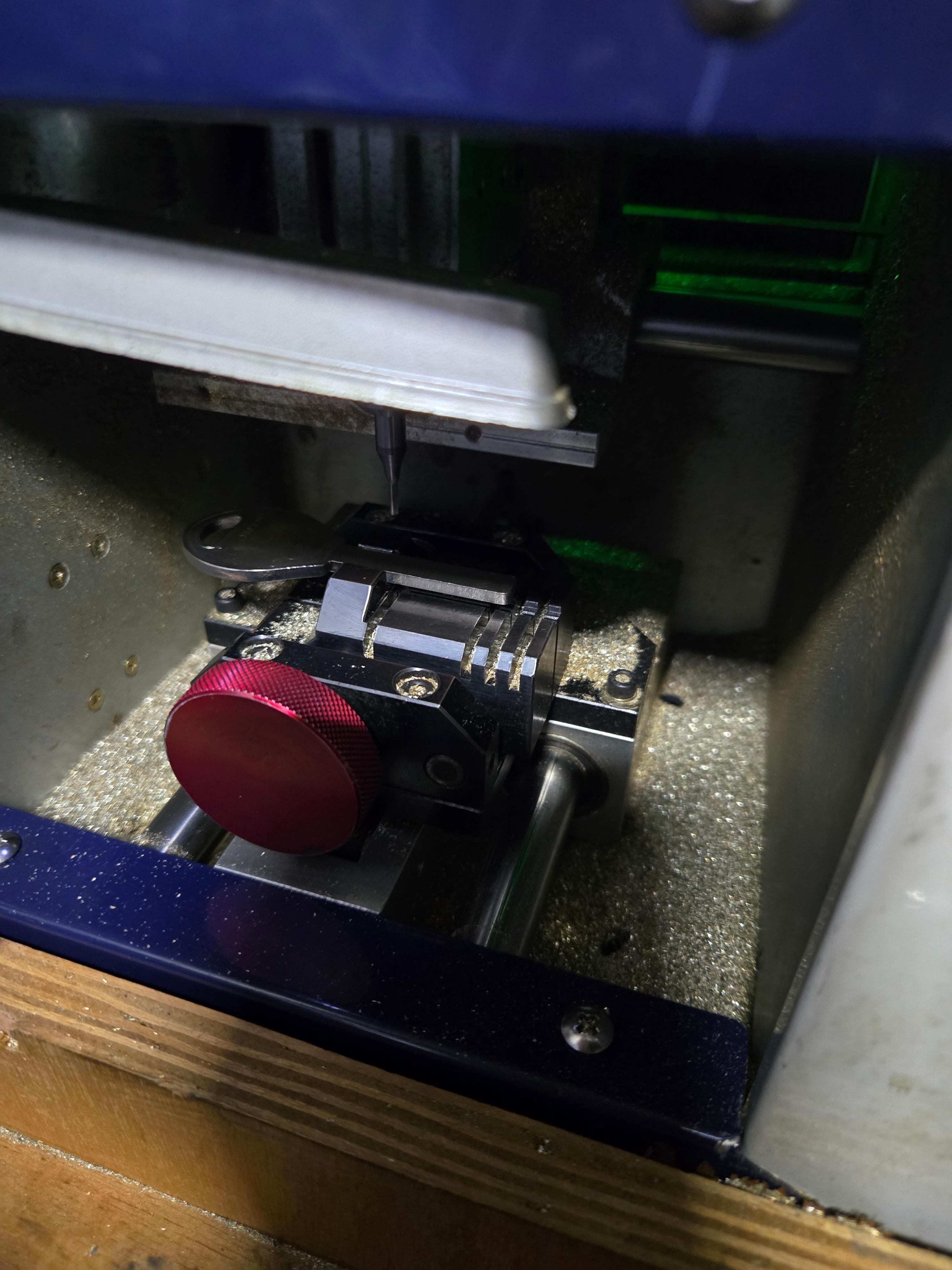 판독한 키모양 데이터를 전용기계에 입력하고 키를 가공합니다