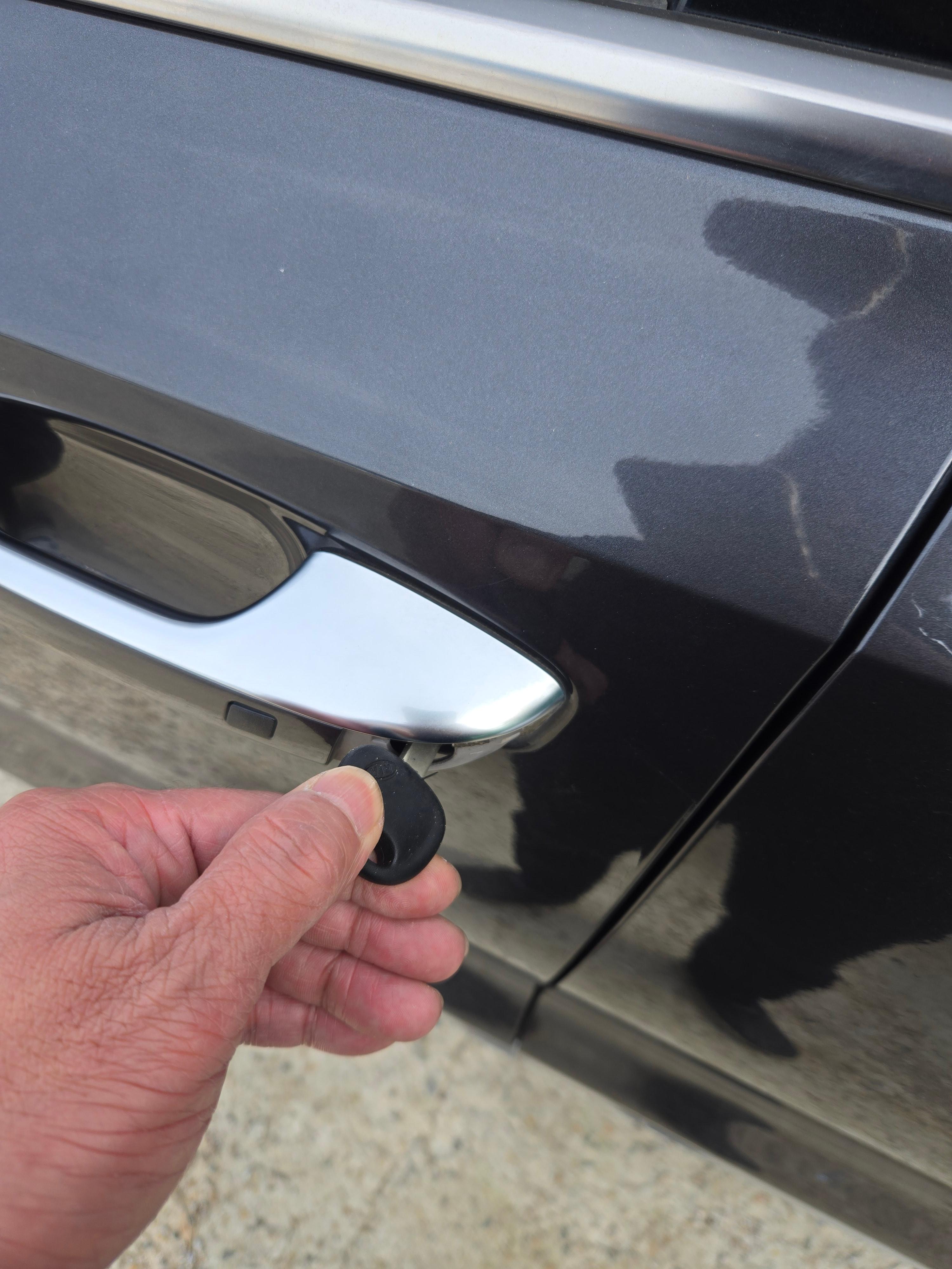 도어의 키캡을 트렁크방향으로밀면 이렇게 키홀이 나옵니다