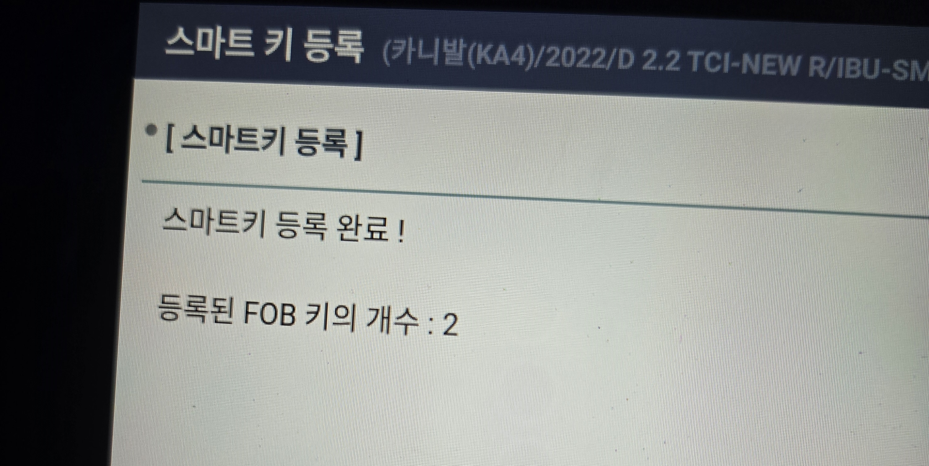 스마트키 등록이 완료된후 시동이켜졌습니다